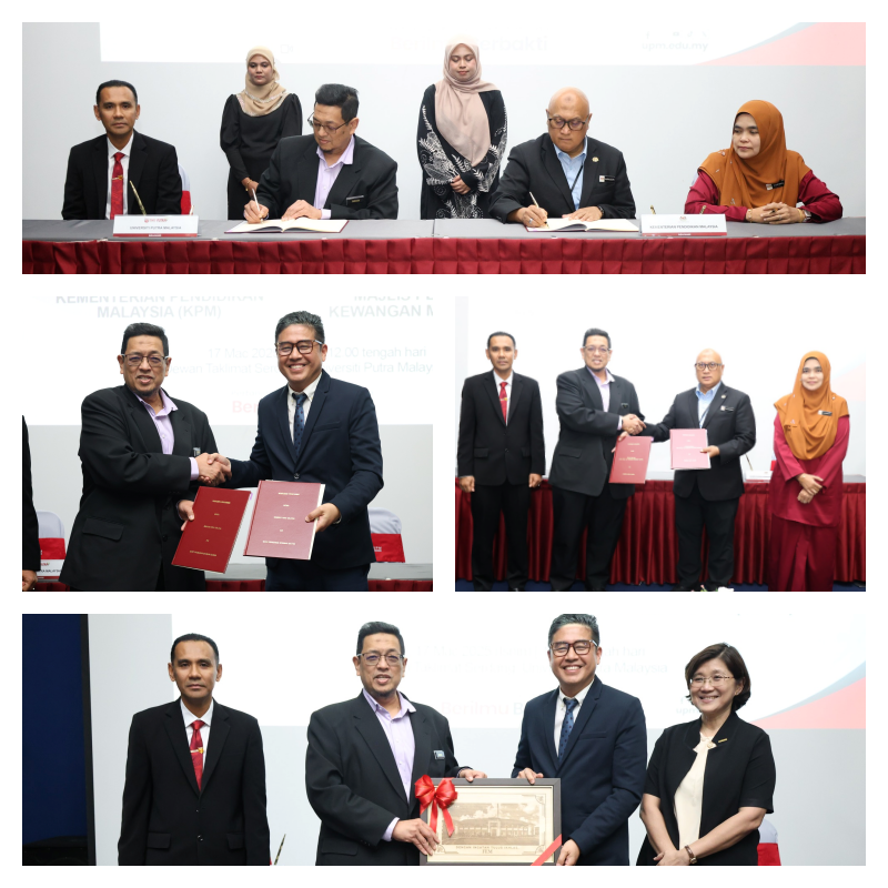 SERDANG, 17 March 2025- A Memorandum of Understanding (MoU) was signed between Universiti Putra Malaysia (UPM) – Ministry of Education Malaysia (KPM) and Universiti Putra Malaysia (UPM) and the Malaysian Financial Planning Council (MFPC) at the Serdang Briefing Room, Universiti Putra Malaysia UPM was represented by Dato' Professor Dr. Ahmad Farhan Mohd Sadullah, Vice-Chancellor of UPM; while, the Ministry of Education Malaysia (KPM) was represented by YBhg. Datuk Haji Ruji Haji Ubi, Secretary-General, Ministry of Education Malaysia (KPM); , as well as the Dean of the Faculty of Human Ecology, Universiti Putra Malaysia, YBhg. Prof. Dr. Mohamad Fazli Sabri. Encik Andy Ng Yen Heng; MFPC President representing the Malaysian Financial Planning Council (MFPC) Also present at the MoU ceremony were, members of the management of the Faculty of Human Ecology, UPM officers and faculty implementing staff. The initiative initiated by YBhg. Prof. Dr. Mohamad Fazli Sabri, Dean of FEM; this is expected to pave the way for various future collaboration programs between UPM-KPM and MFPC This collaboration also emphasizes the importance of academic collaboration in facing global challenges and will share the responsibility to advance higher education and research for regional and global benefits. UPM is committed to strengthening this academic relationship and working closely with MFPC to create meaningful opportunities for both institutions in the future. News by: Mr. Mohd Aspah Kasim (TDAA HEPA) Office, Faculty of Human Ecology |